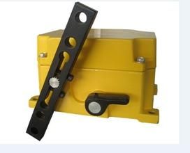 當(dāng)外力作用于開(kāi)關(guān)拉繩的任何一處位置時(shí),即可使開(kāi)關(guān)的拉桿旋轉(zhuǎn),當(dāng)拉桿旋轉(zhuǎn)20°時(shí),開(kāi)關(guān)輸出停機(jī)信號(hào),同時(shí)開(kāi)關(guān)鎖定,并保持該狀態(tài)。當(dāng)開(kāi)關(guān)復(fù)位時(shí),必須按壓其復(fù)位按鈕,開(kāi)關(guān)解鎖復(fù)位,拉桿回到正常位置。